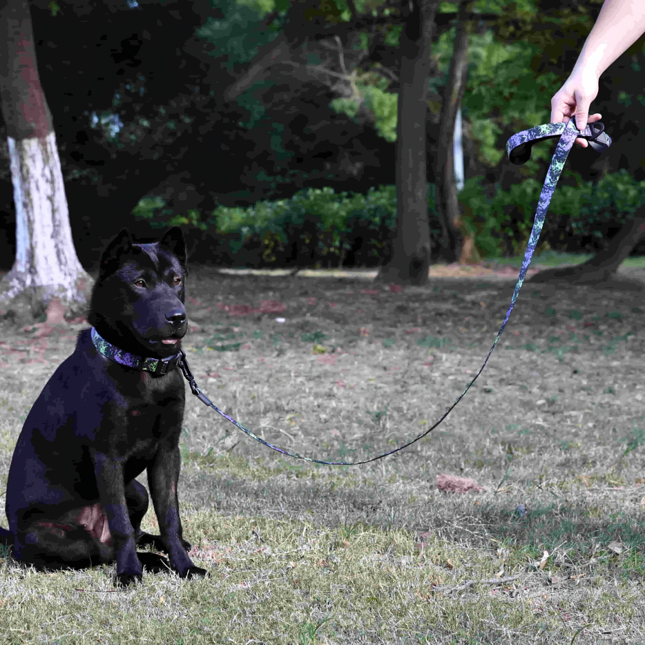 Home > Embossed UV Printed Dog Leash & Collar Set 1.5cm Wide, Waterproof Tear-Resistant Easy To Clean PVC Set, Stylish Patterned Walking Training Gear F